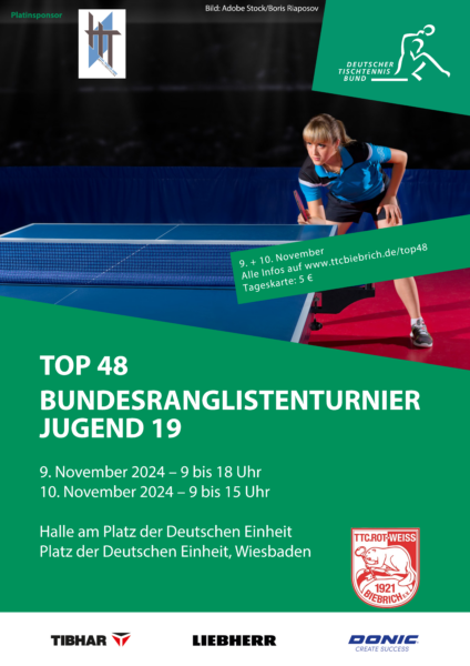 Der TTC Rot-Weiß 1921 Biebrich e.V. freut sich, die Deutsche Tischtennis Bundesrangliste Top 48 der U19 am 9. und 10. November 2024 in der Sporthalle am Platz der Deutschen Einheit auszurichten. Dies ist bereits die fünfte nationale Turnierveranstaltung, die der Verein in den letzten zehn Jahren in Wiesbaden organisiert.„Wir sind stolz darauf, erneut eine so […]