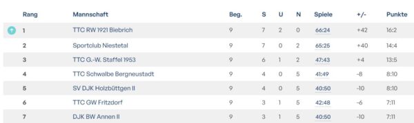 Mit zwei klaren Siegen meldet sich der TTC Rot-Weiß 1921 Biebrich eindrucksvoll in Regionalliga zurück. Die Erfolge gegen Staffel und Hölzbüttgen kamen zwar nicht völlig überraschend, da beide Gegnerinnen auf wichtige Spielerinnen verzichten mussten. Dennoch unterstreicht die souveräne Bilanz von 10:0 und 9:1 die hohen Ambitionen der neu formierten Biebricher Damenmannschaft deutlich. Unter der Leitung […]