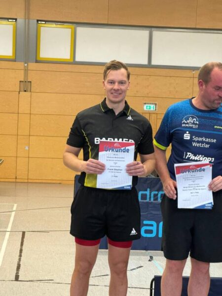 Herzlichen Glückwunsch an Frank Stephan, unseren Kapitän der 1.Herren, zum Gewinn der Vize-Hessenmeisterschaft im Einzel und der Hessenmeisterschaft im Doppel mit Michael Mengel (TV Braunfels) in der Konkurrenz Senioren 40.